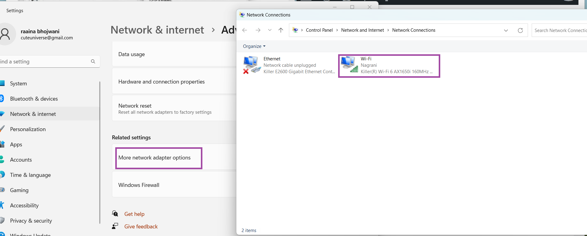 - Cliquez surParamètres réseau avancés>Plus d'adaptateur réseau choix.