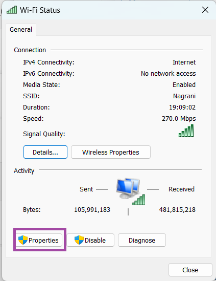 - SélectionnerPropriétéset double-cliquez surProtocole Internet (TCP/IP).