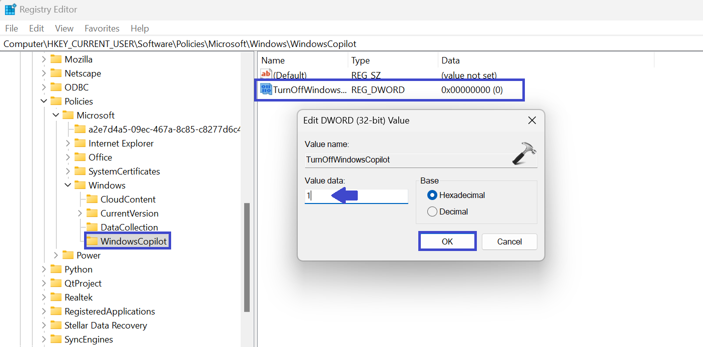5. Double-cliquez sur «DésactiverWindowsCopilot". Une boîte de dialogue apparaîtra.