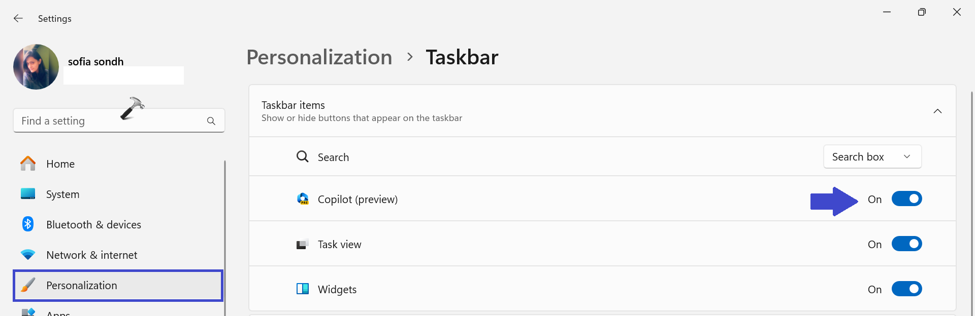 3. Activez le bouton pour activer le Copilot et désactivez-le pour désactiver le Copilot sous Windows 11.