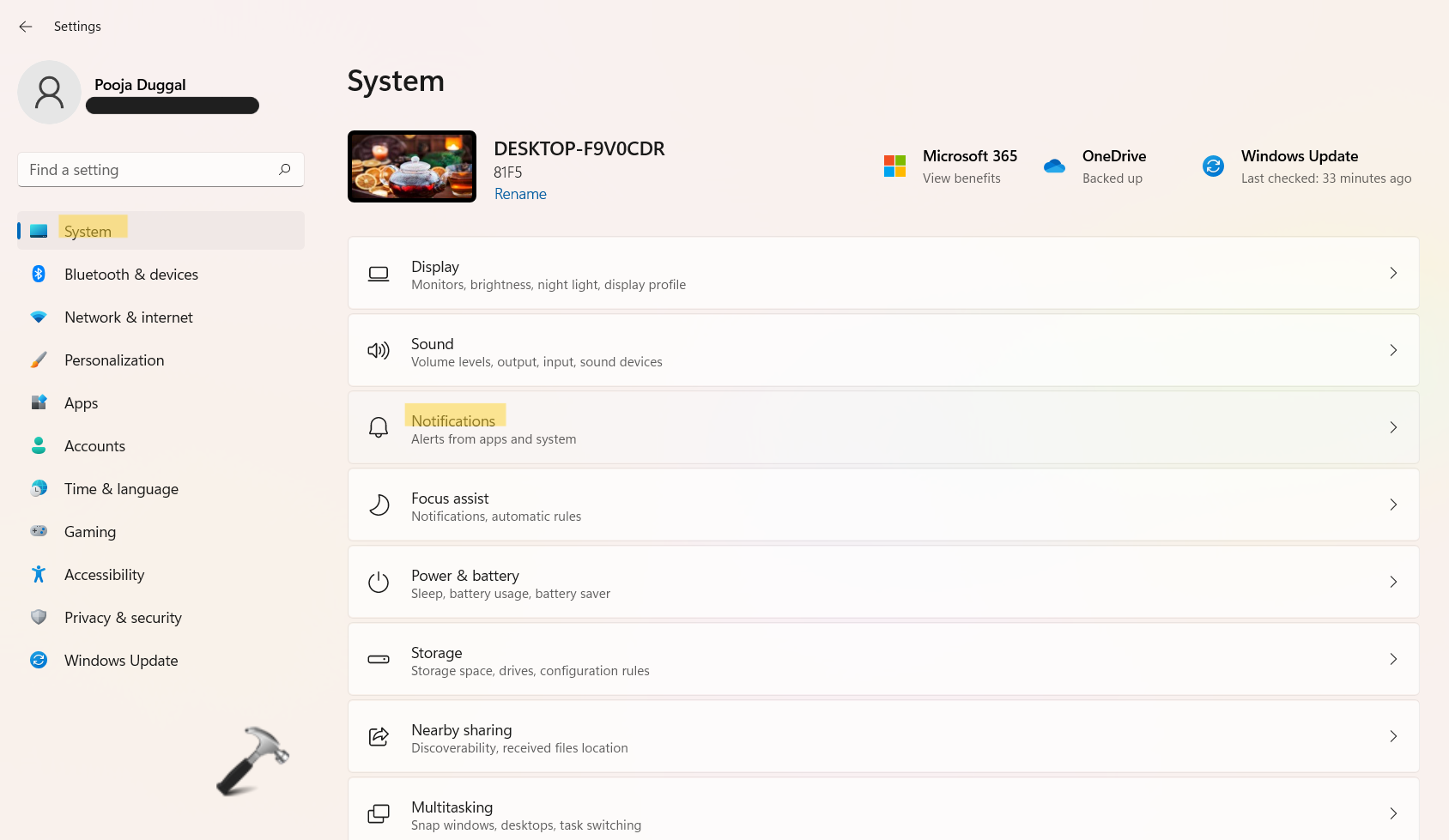 1.OuvrirParamètresen appuyant sur leWindows + jeonglets ensemble sur votre clavier et accédez auSystèmelanguette. Après cela, cliquez surNotificationsprésent sur le côté droit.