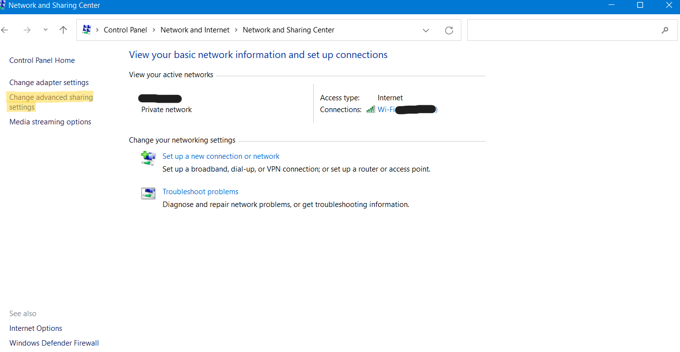 De là, cliquez surModifier les paramètres de partage avancésprésent à gauche.
