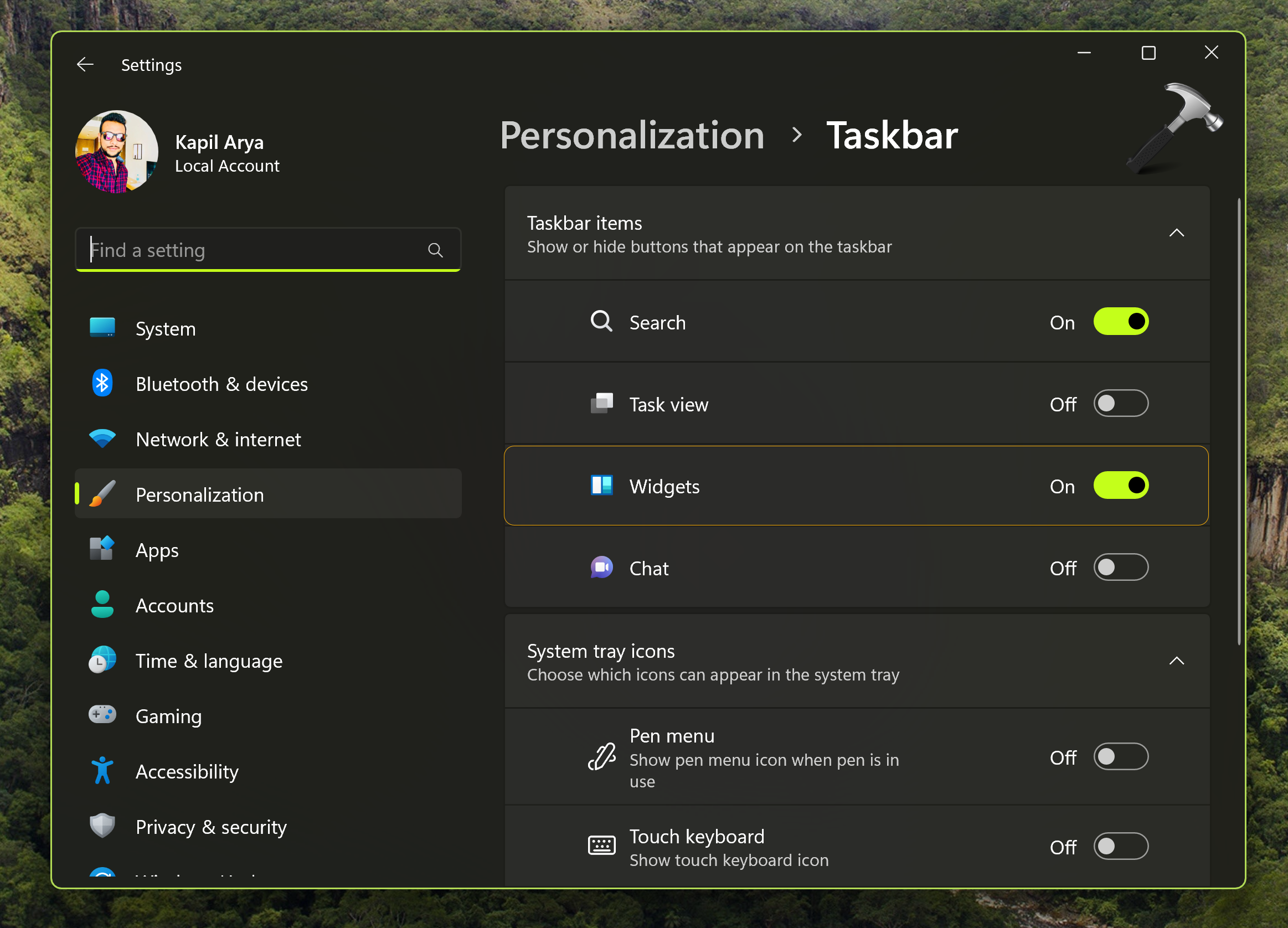 Ici, il convient de mentionner que les widgets ne peuvent pas être désactivés en utilisant leurs propres paramètres. Vous devez vous fier à l'application Paramètres, à la stratégie de groupe ou au registre pour désactiver la fonctionnalité Widgets.