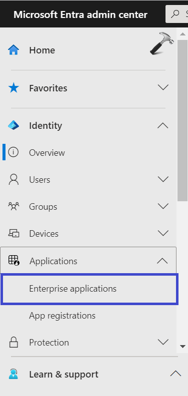 2. Sur le panneau de gauche, cliquez sur «Applications d'entreprise“.