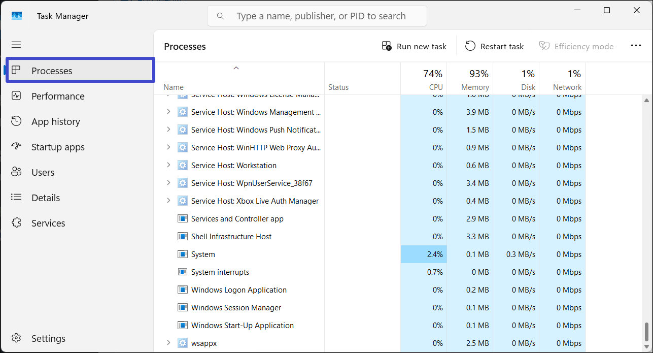 2. Dans la fenêtre du Gestionnaire des tâches, accédez au «Processusonglet ".