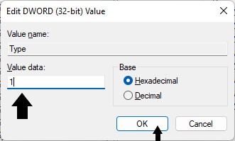 5. Modifiez leValeur des données à 1et appuyez sur OK.