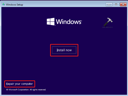 Étape 6-Enfin, sélectionnez Installer maintenant ou Réparer votre ordinateur selon les besoins. Si Réparer votre ordinateur est sélectionné, visitez Dépannage et sélectionnez l'option requise pour résoudre le problème.
