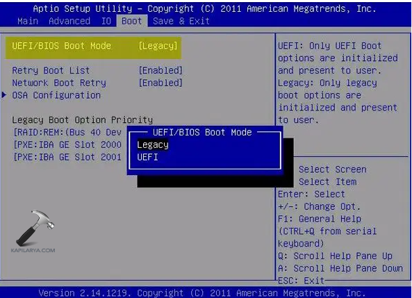 Étape 4-Ensuite, définissez le mode de démarrage du BIOS ou le mode MIUF sur Legacy. Enfin, enregistrez toutes les modifications et démarrez le PC.