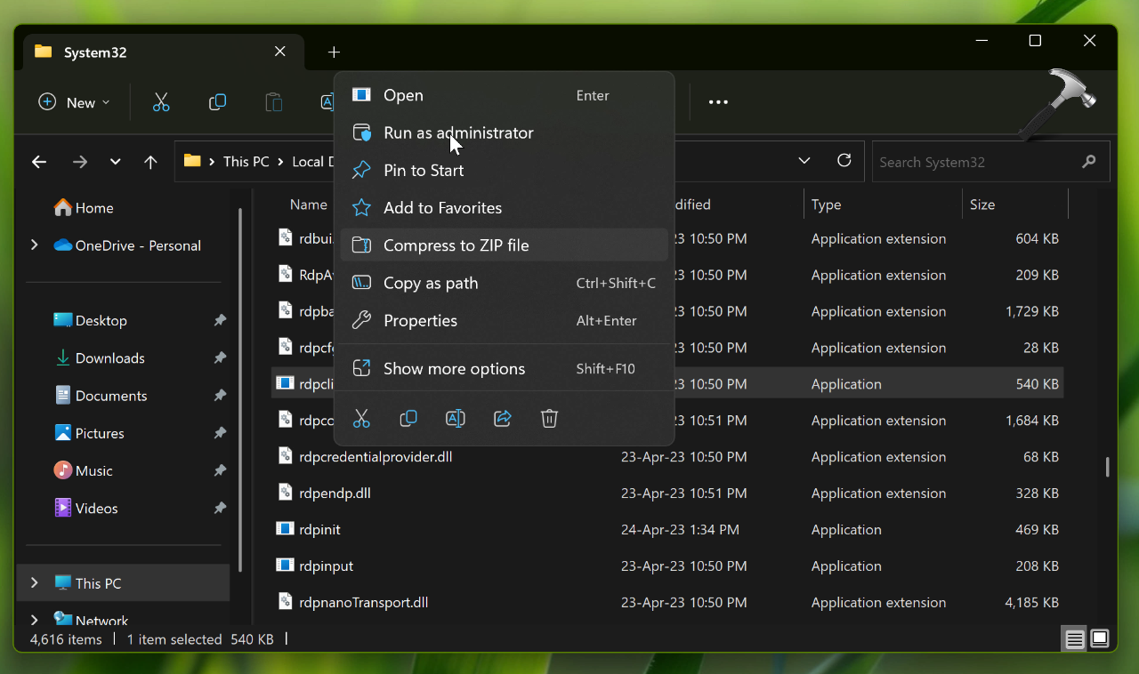 3. Dans le dossier System32, localisezrdpclip.exedéposer.