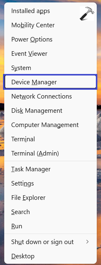1. Ouvrez leMenu utilisateur avancéen appuyant sur la touche Windows + X puis sélectionnez «Gestionnaire de périphériques“.
