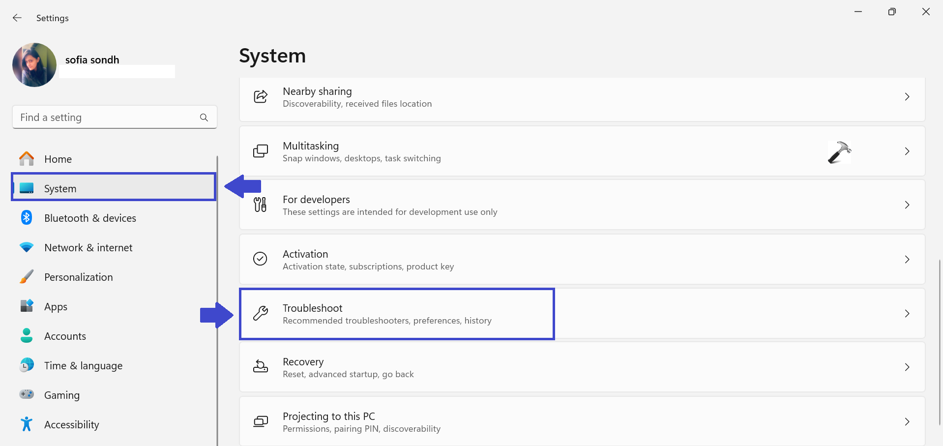 2. Maintenant, allez dans «Système» et cliquez sur «Dépanner“.