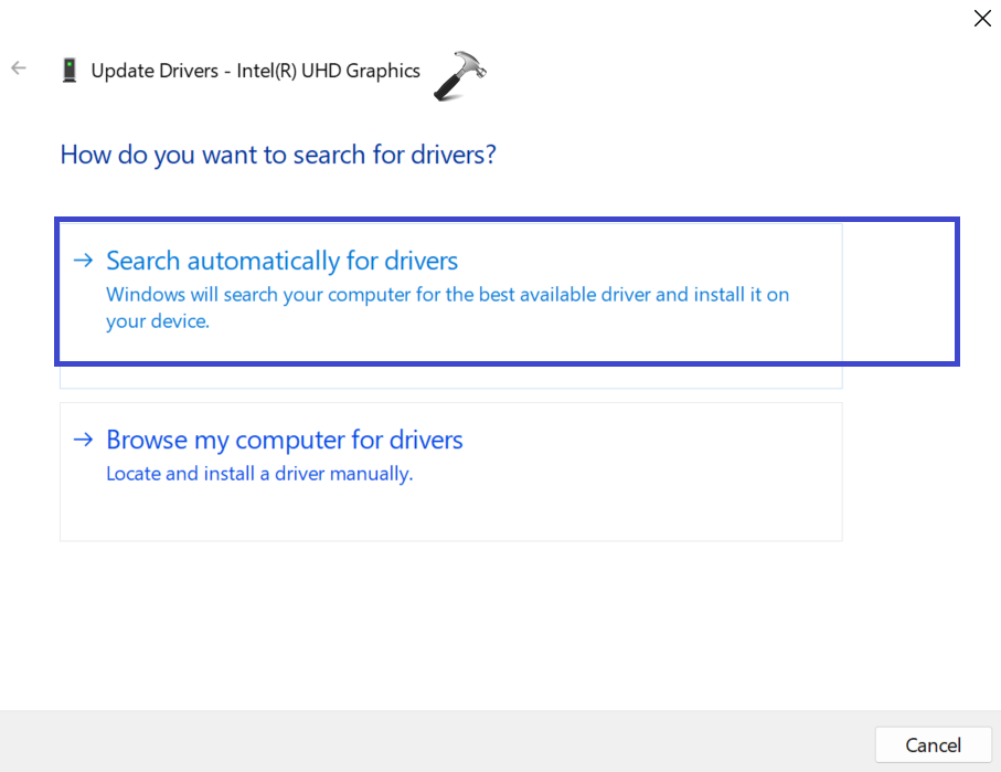 4. Maintenant, cliquez sur le «Rechercher automatiquement des pilotes" option.