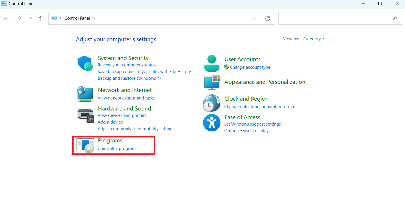 Cliquez ensuite surDésinstaller un programmedansProgrammes et fonctionnalités.