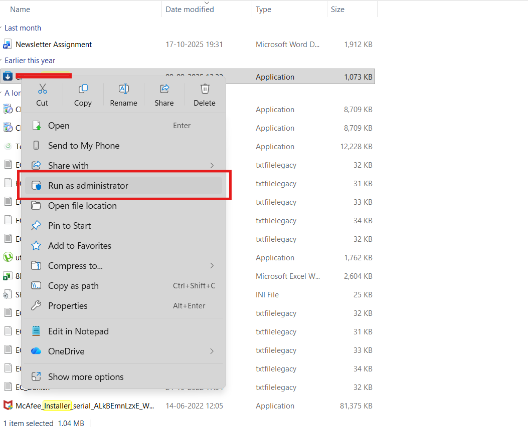 - Essayez à nouveau le programme d'installation (en tant qu'administrateur).