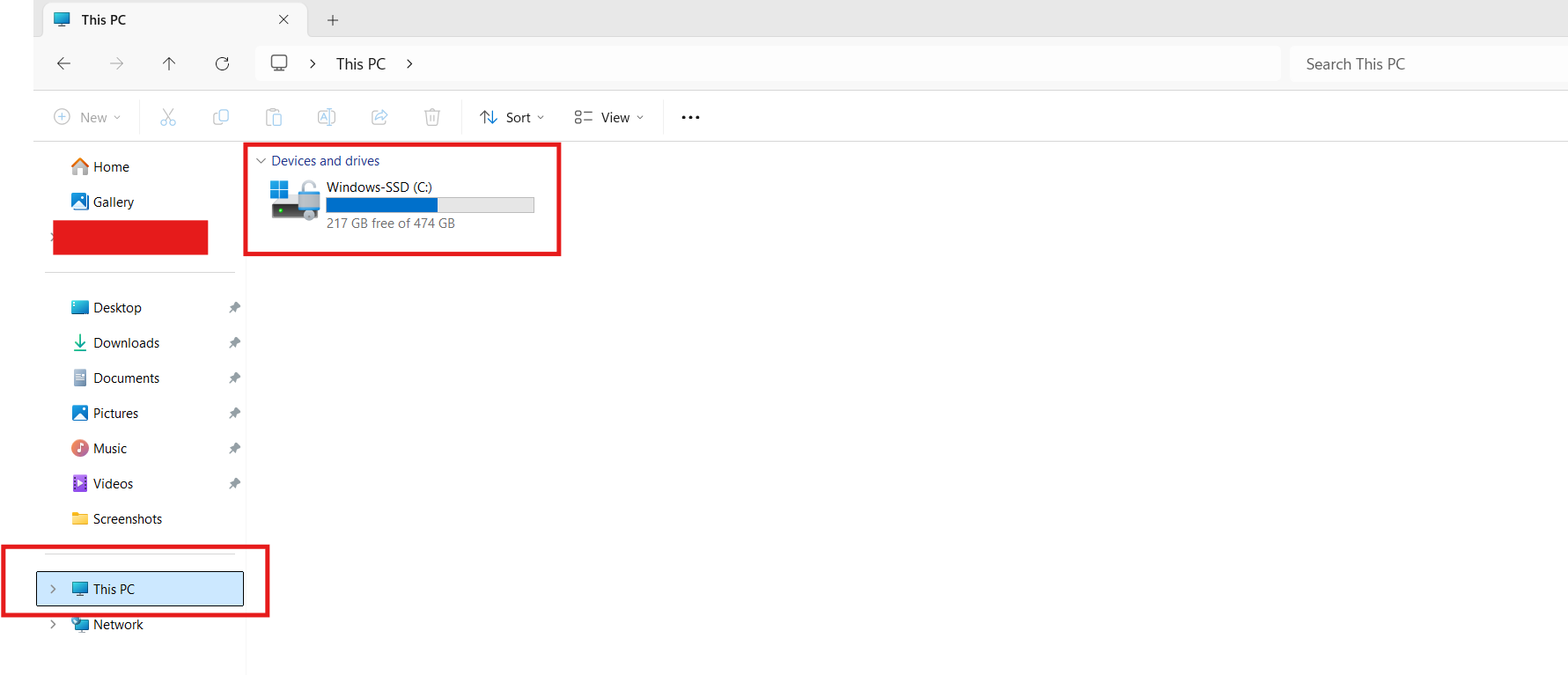 - Ouvrez l'Explorateur de fichiers, accédez à Ce PC et vérifiez l'espace libre du lecteur système.