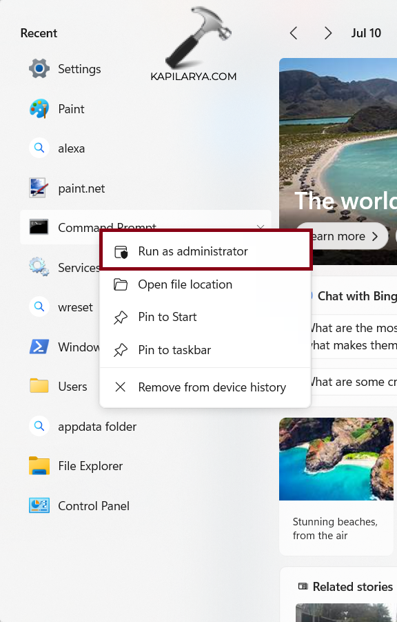 1. Ouvrez l'invite de commande en tant qu'administrateur.
