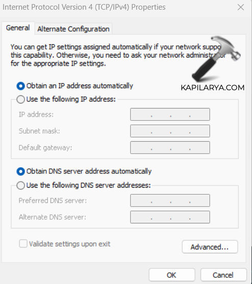 Correctif 7 : autoriser Windows à obtenir automatiquement l’adresse IP