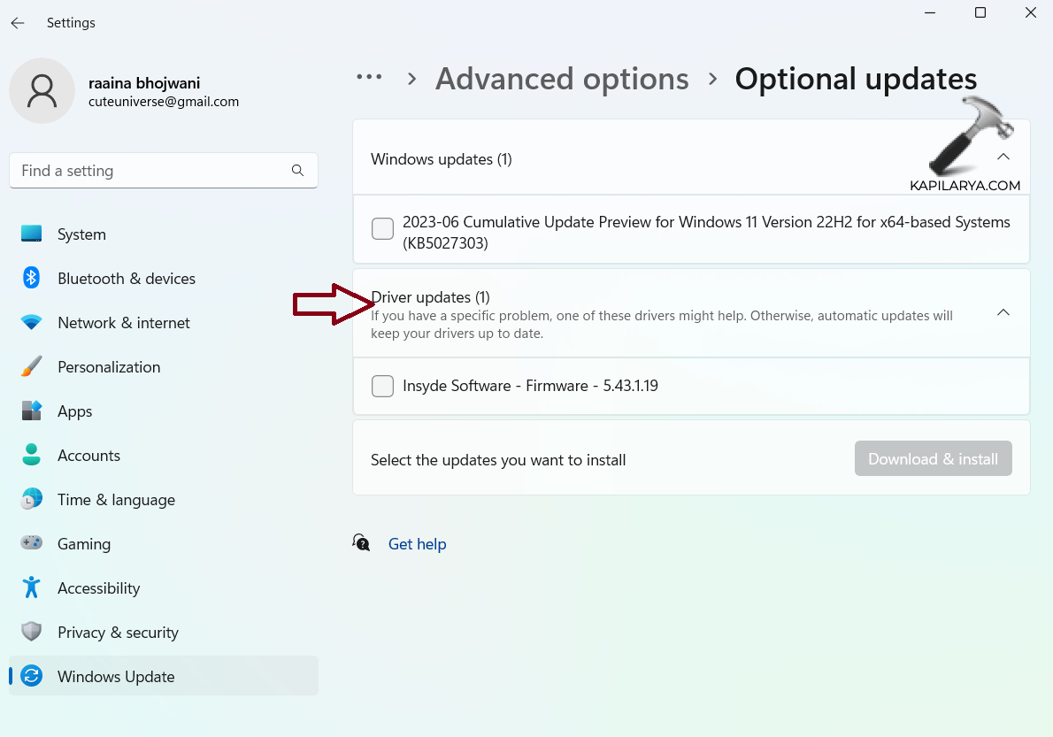 5. Sous Mises à jour des pilotes, une liste de mises à jour sera disponible, que vous pourrez choisir d'installer.