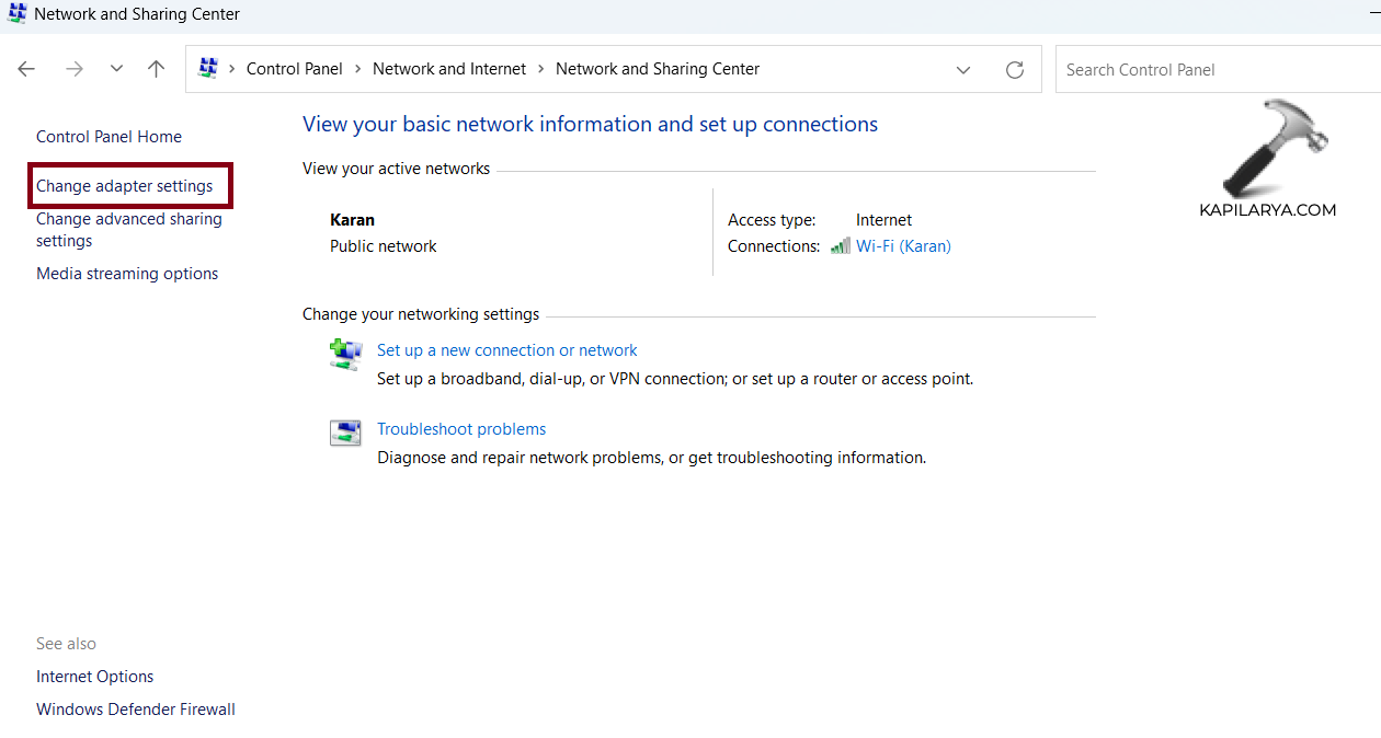 4. Cliquez sur « Modifier les paramètres de l'adaptateur ».