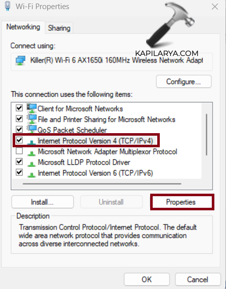 6. Sélectionnez « Internet Protocol Version 4 (TCP/IPv4) » et cliquez sur le bouton « Propriétés ».