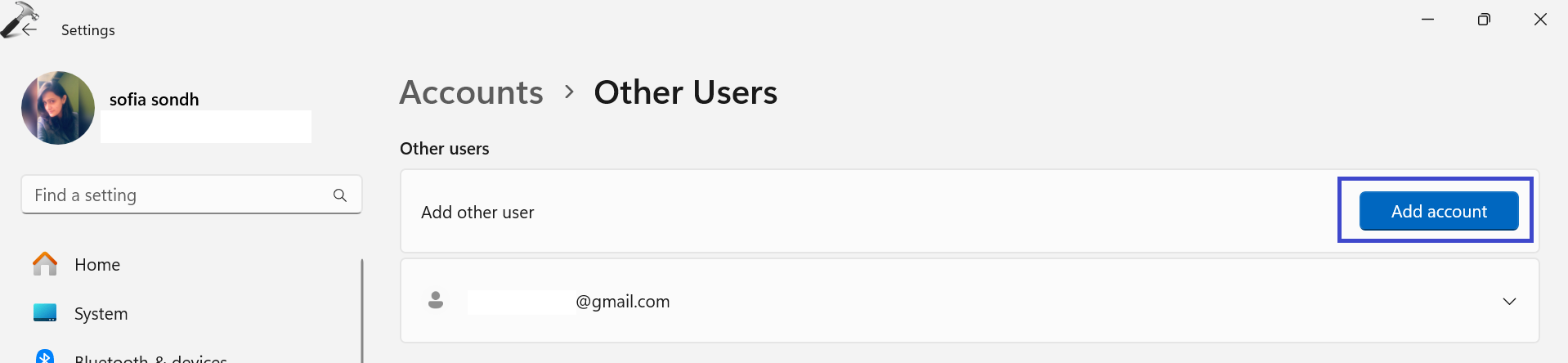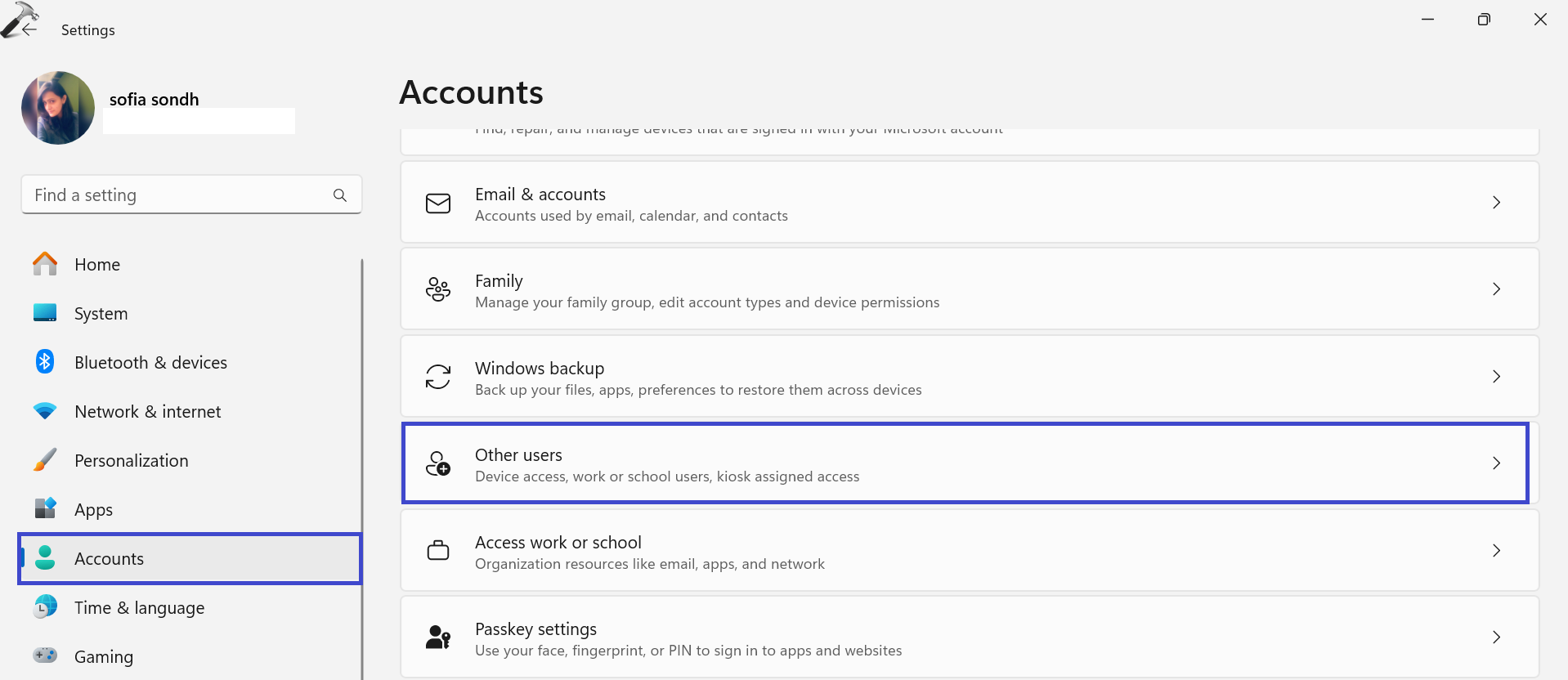 1. Accédez à «Paramètres => Comptes => Autres utilisateurs”.