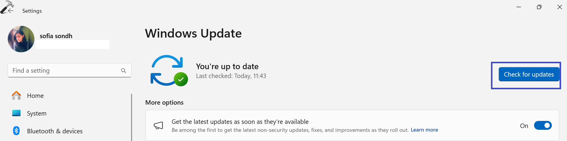 1. Ouvrez l'application Paramètres et accédez à «Mise à jour Windows« .