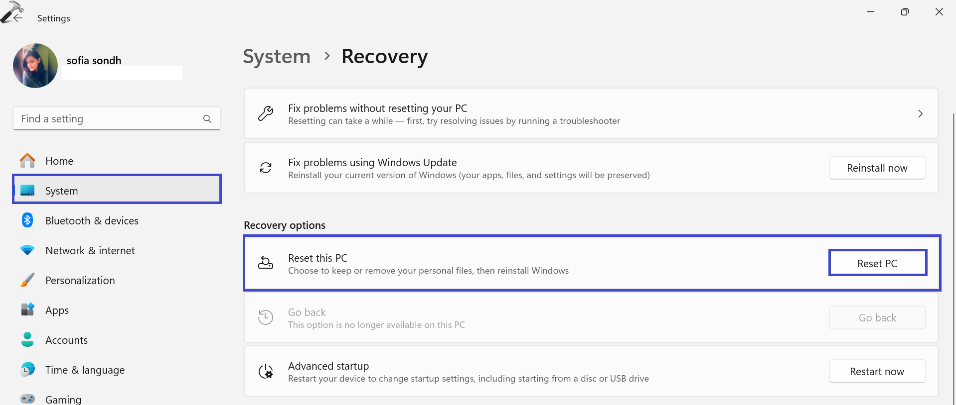 1. Accédez àParamètres => Système => Récupération.
