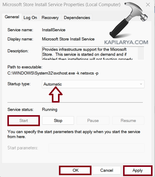 4. Dans le « Type de démarrage », sélectionnez « Automatique ».