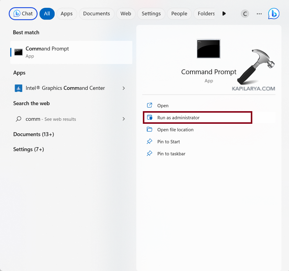 1. Ouvrez l'invite de commande et un administrateur.