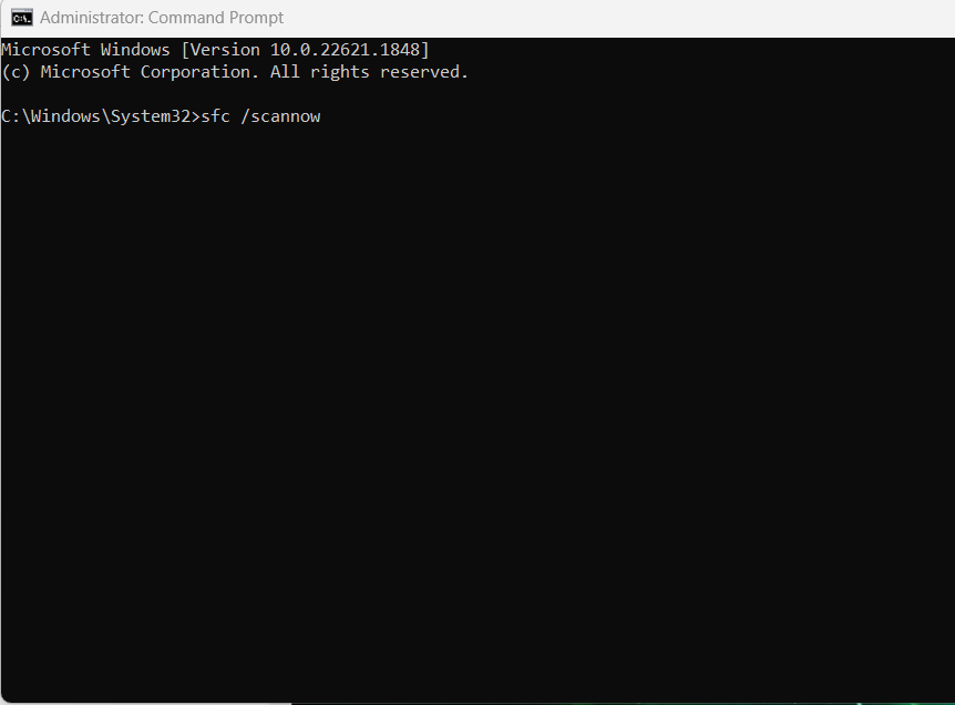 2. Tapez la commande :sfc /scannow