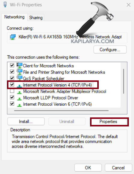 3. Cliquez sur « Protocole Internet version 4 (TCP/IPv4) ».