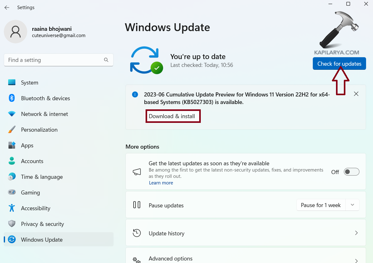 3. Cliquez sur le bouton « Télécharger et installer ». Si ce bouton n'apparaît pas, cliquez sur « Rechercher les mises à jour ».