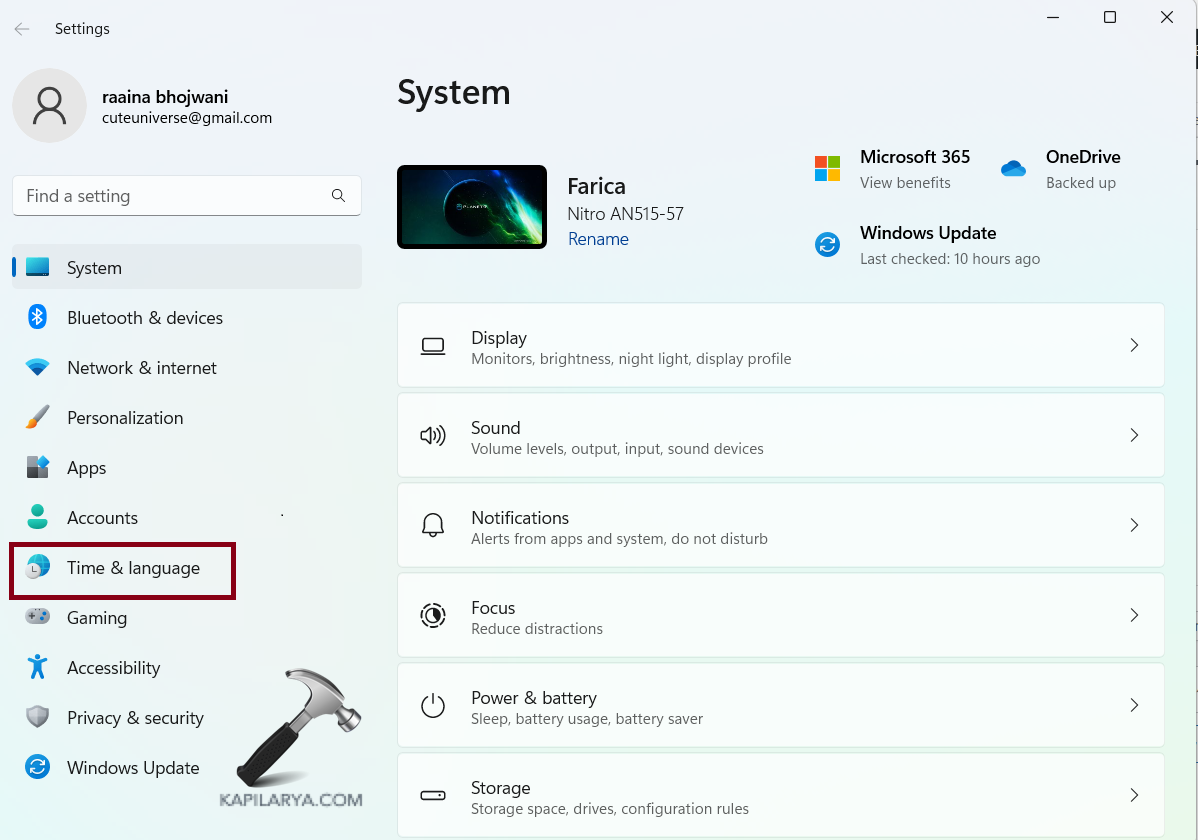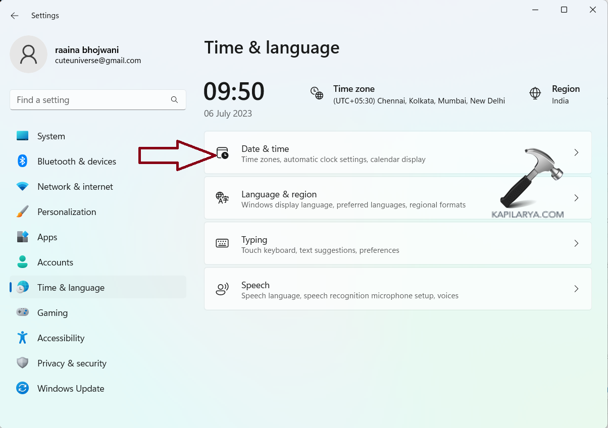 2. Cliquez sur « Heure et langue ».