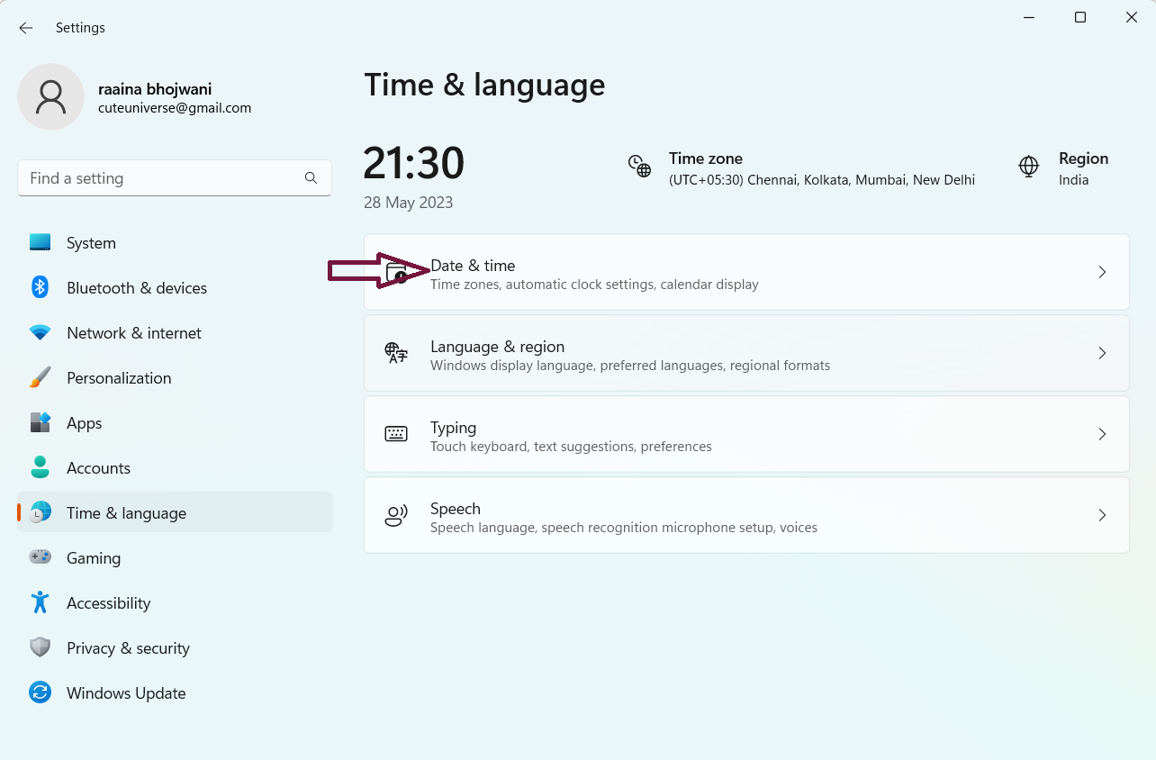 Correctif 3 : vérifiez vos paramètres de date et d’heure pour corriger le Microsoft Store qui ne s’ouvre pas dans Windows 11