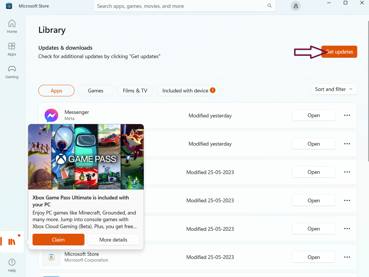 Ensuite, cliquez sur trois points dans le Microsoft Store.