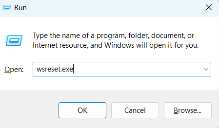 Tapez ensuite wsreset.exe et appuyez sur la touche Entrée.