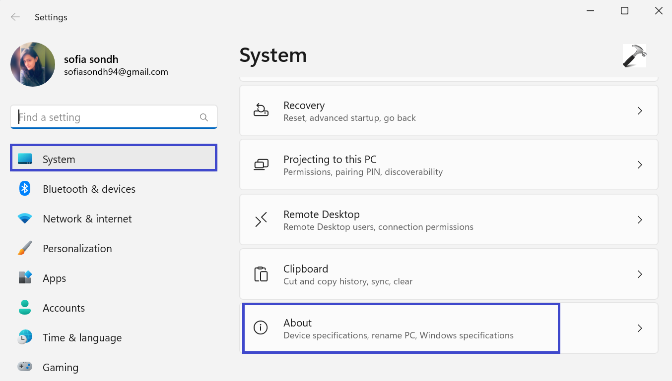 1.Ouvrez l'application Paramètres et accédez à «À propos« .