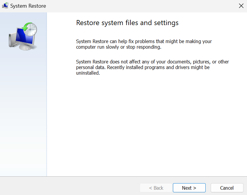 La restauration du système reprendra votre système d'exploitation lorsqu'il n'y a eu aucun problème. Pour ce faire, suivez les étapes ci-dessous :