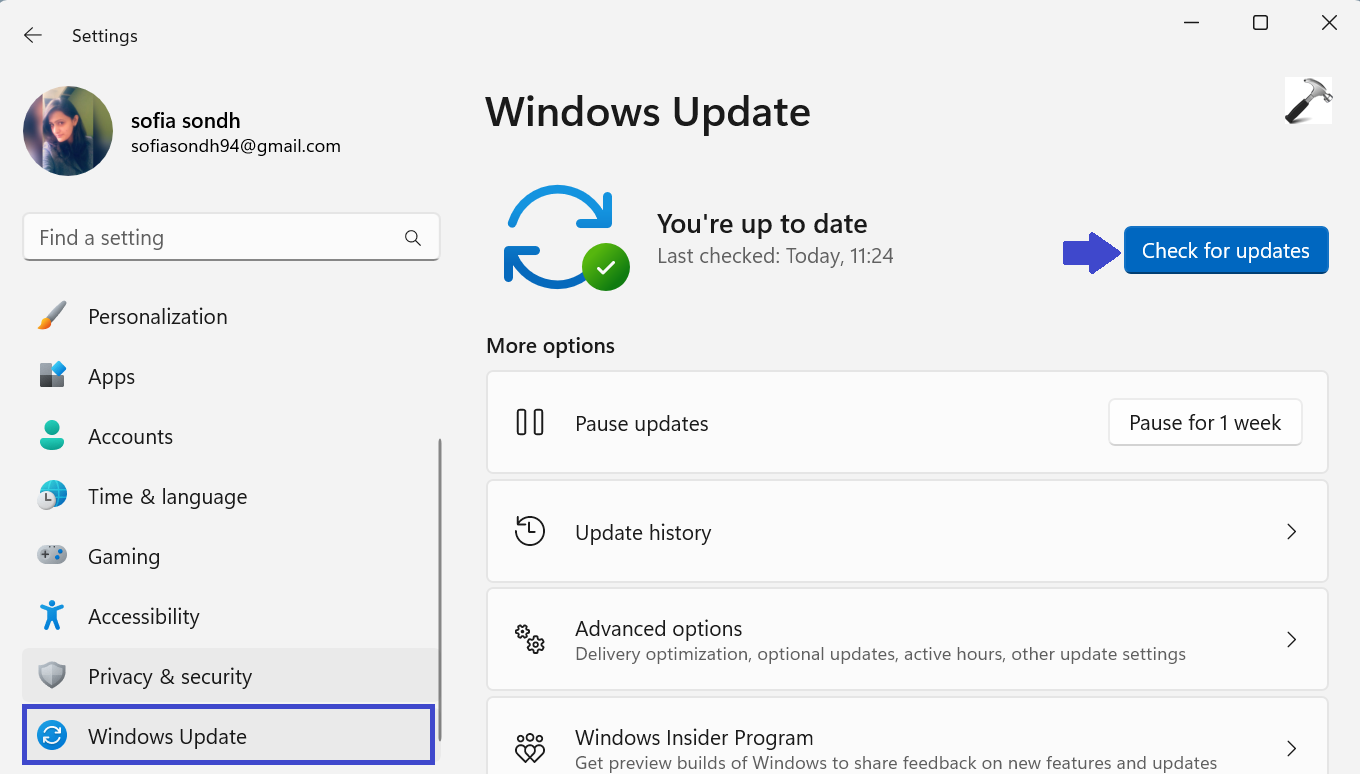 3. Cliquez sur «Vérifier les mises à jour« .