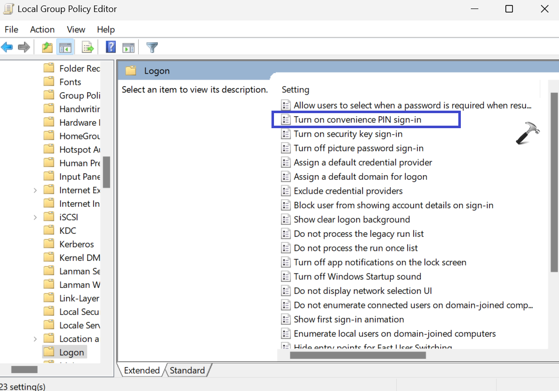 Computer configuration/Administrative Templates/Logon