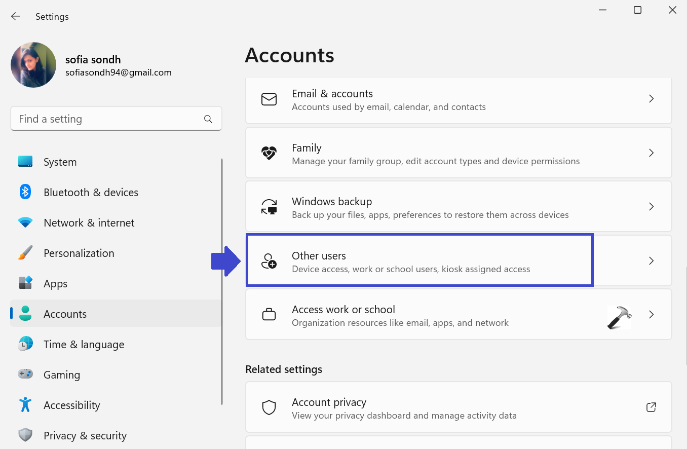 2. Maintenant, cliquez sur « Autres utilisateurs ».
