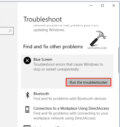 L'exécution de l'utilitaire de résolution des problèmes d'écran bleu peut également aider à résoudre le problème. Ainsi, les utilisateurs devraient l’essayer.