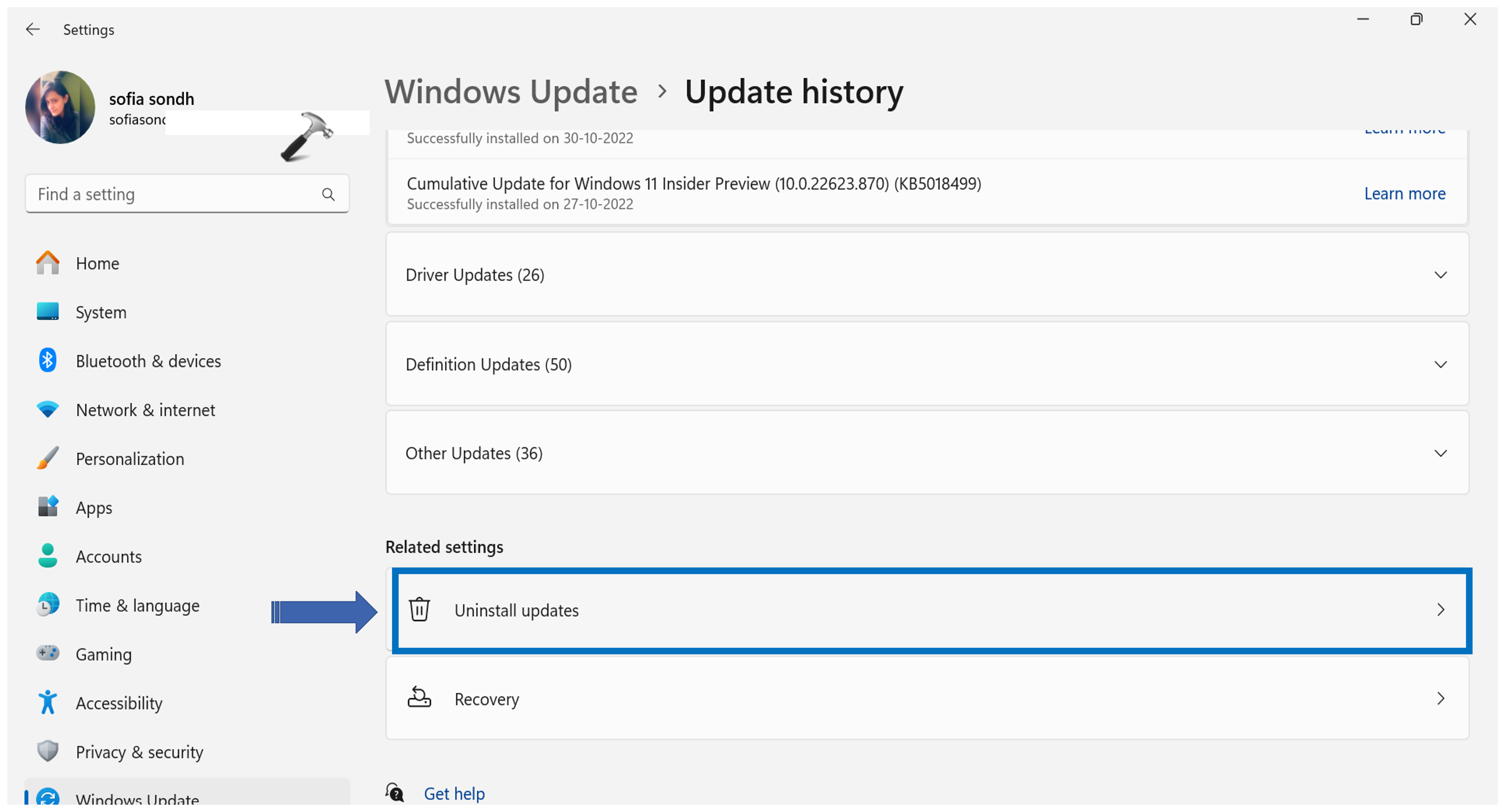 Pour résoudre le problème de réinitialisation continue de l'application Paramètres dans Windows 11, vous pouvez essayer de désinstaller la mise à jour Windows la plus récente. Cela peut résoudre le problème si la mise à jour est corrompue ou provoque un conflit avec un autre programme ou service.
