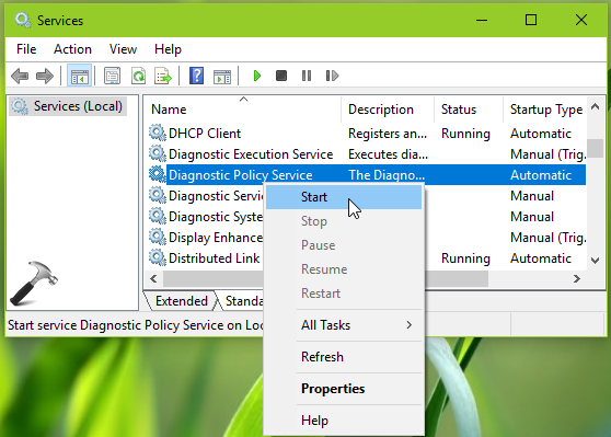 2.Dans la fenêtre du composant logiciel enfichable Services, faites défiler vers le bas et recherchezService de politique de diagnostic. Lorsque vous êtes confronté à ce problème, le service ne fonctionnera pas. Alors faites un clic droit dessus et sélectionnezCommencer.