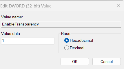 Correctif 2 : activer l'effet de transparence à l'aide de l'éditeur de registre