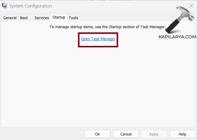 6. Maintenant, cliquez sur l'onglet « Démarrage ».
