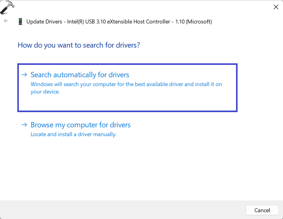 4. Une boîte de dialogue apparaîtra. Sélectionnez le «Rechercher automatiquement des pilotes" option.
