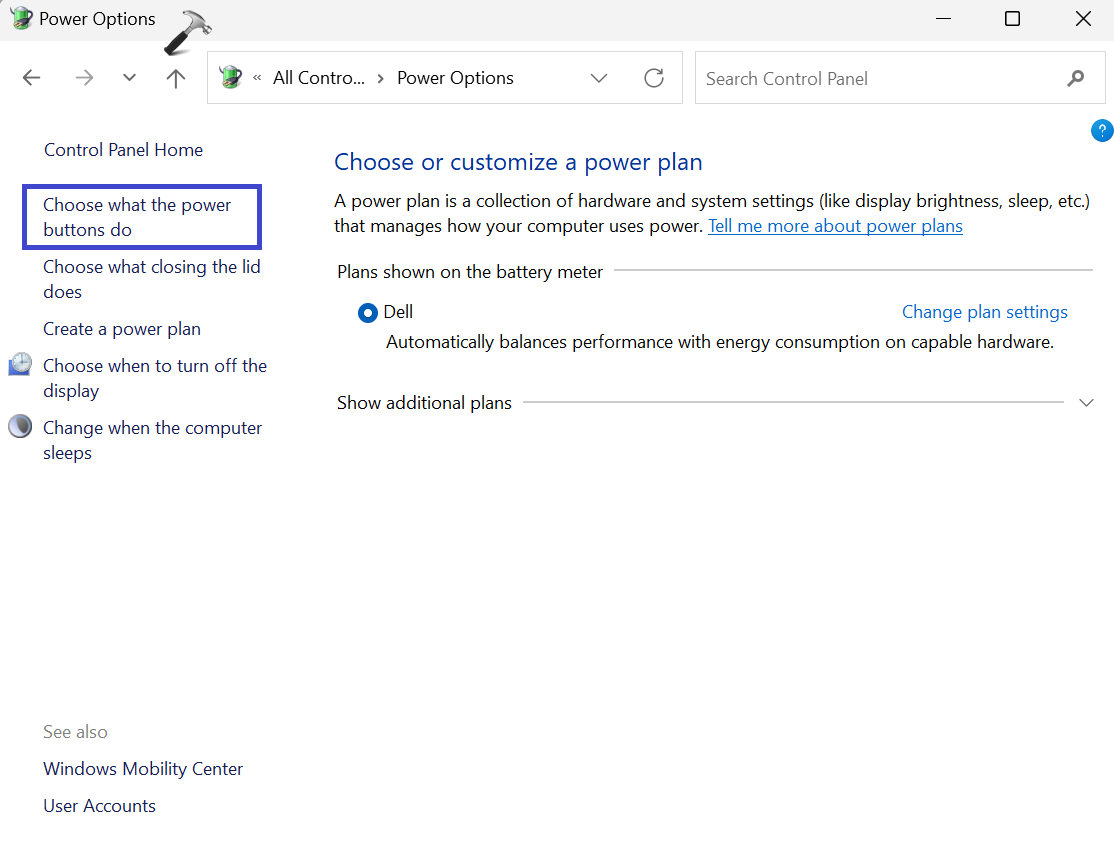 2. Maintenant, cliquez sur «Choisissez ce que font les boutons d'alimentation« .