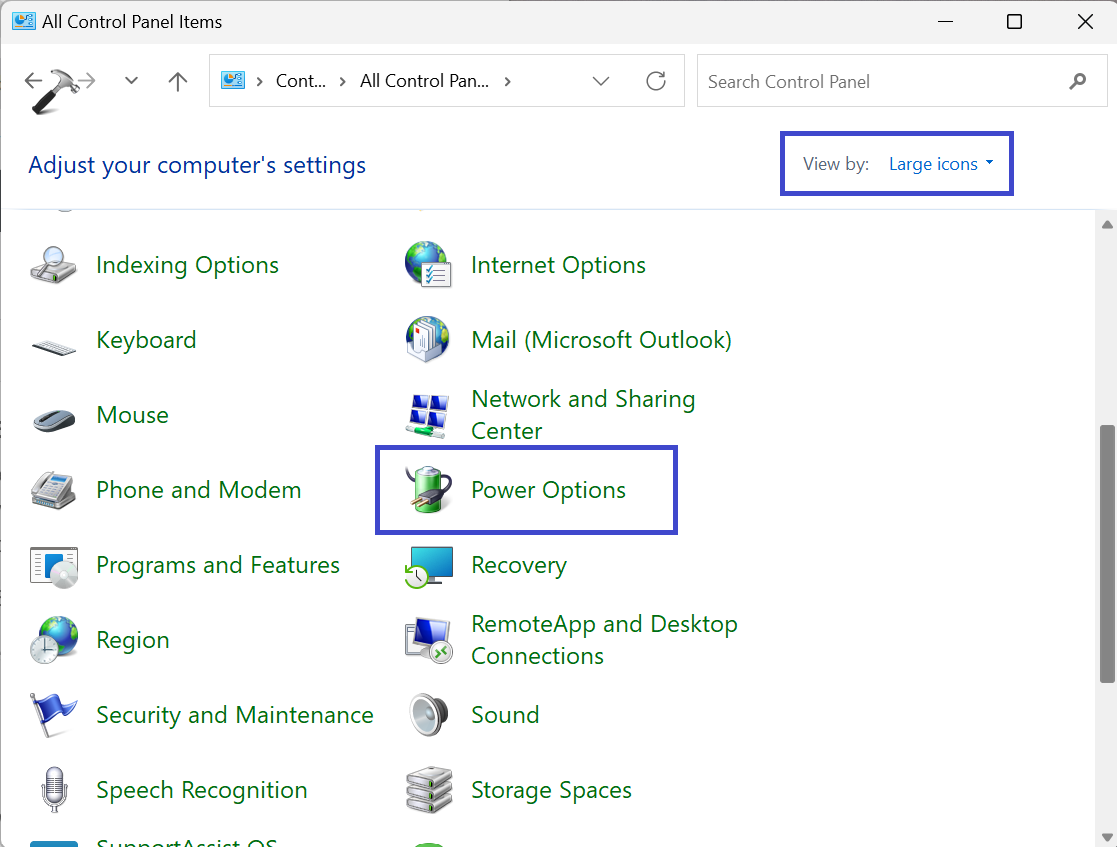 1. Accédez à «Panneau de configuration => Matériel et audio => Options d'alimentation« .