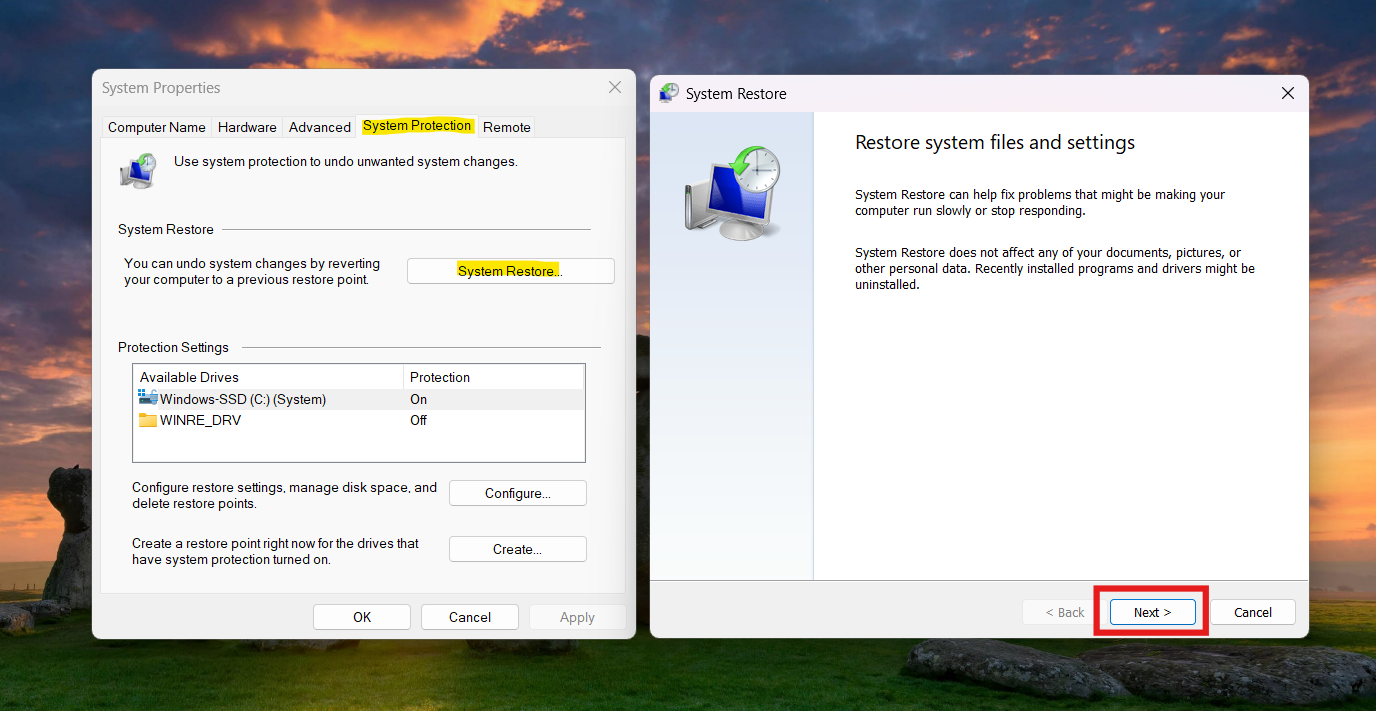 1. Si l'USB-C fonctionnait auparavant et s'arrêtait après des modifications récentes, utilisez la restauration du système pour revenir à un point où il fonctionnait correctement.